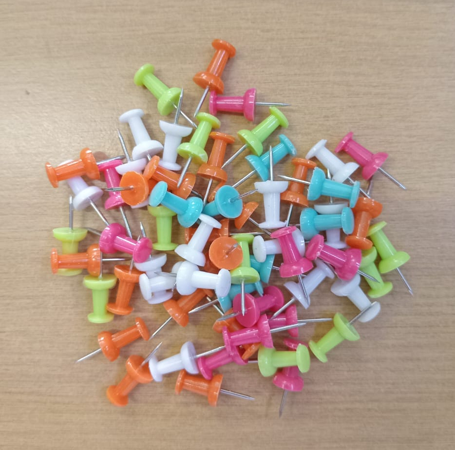 - Push pins can be clustered together to create decorative accents or focal points on scrapbook layouts. Mixing and matching push pins of different colors, shapes, and sizes adds variety and personality to the design.